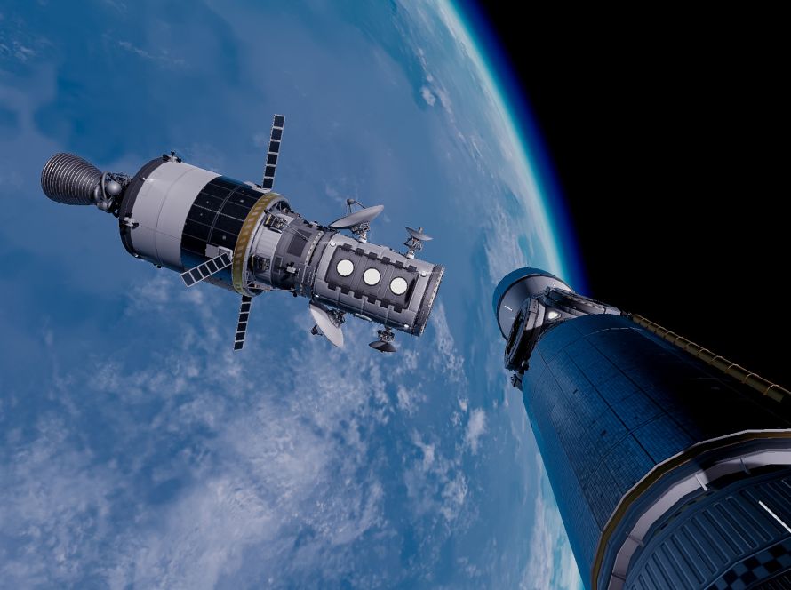 Placer en orbite basse équatoriale (~90–120 km) un module “Core+Tank” : probe core (contrôle + SAS), grand réservoir pour carburant de station, ports d’amarrage, panneaux et RCS. Ce module servira de root et d’ancrage pour tout le reste de la station.