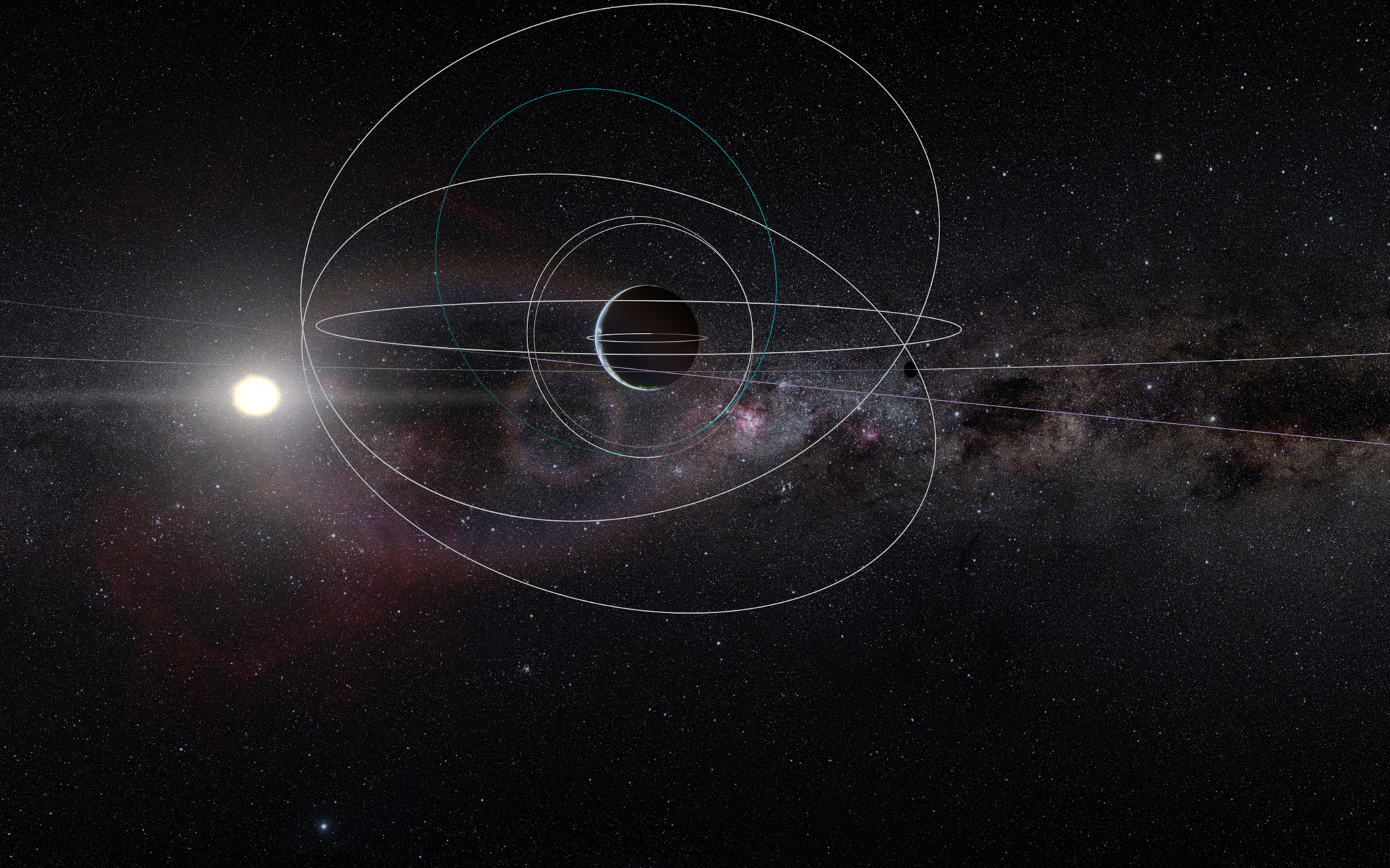 Altitude orbitale cible : 700 km → rayon orbital 1 300 km.