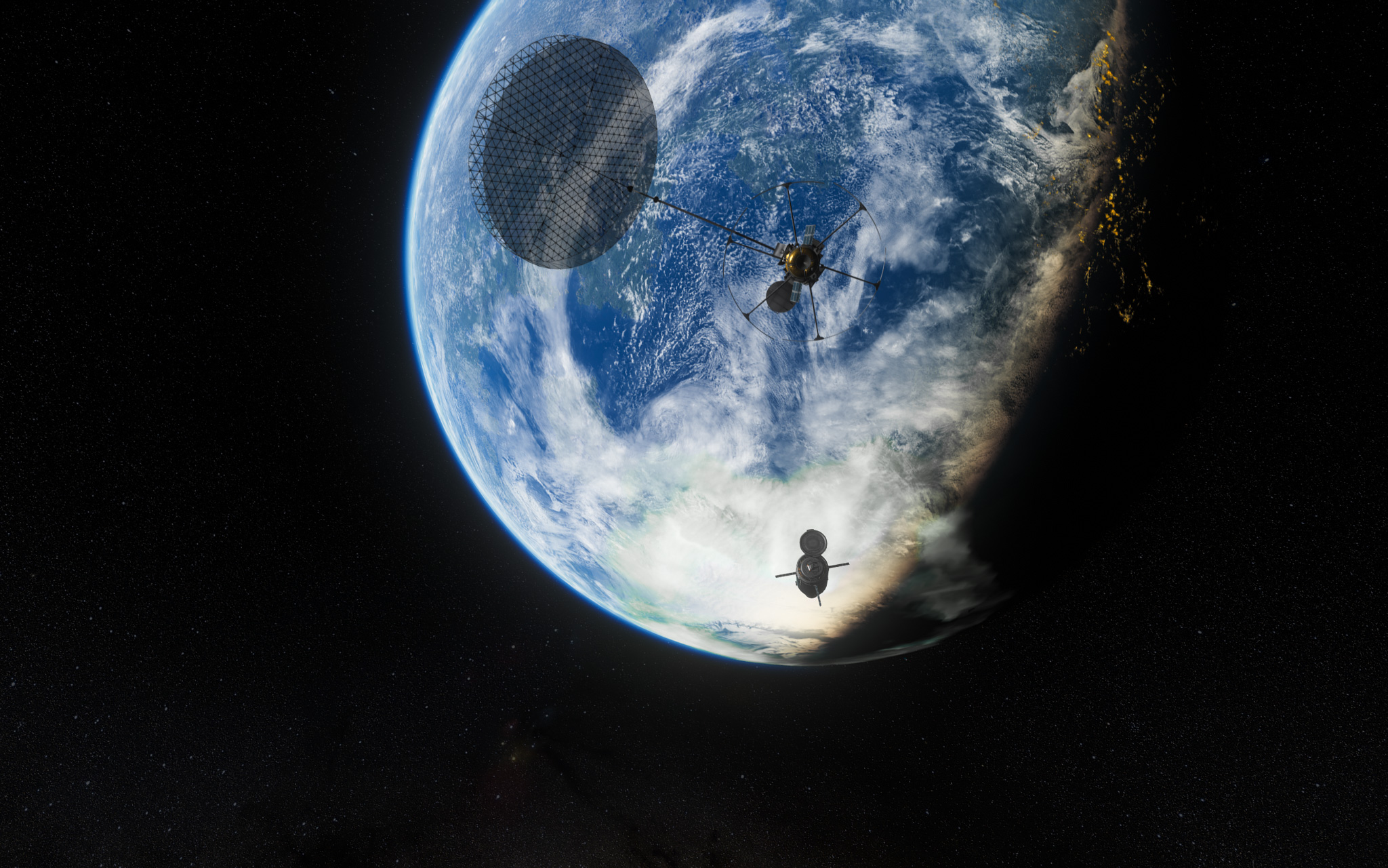Déployer 2 satellites en orbite polaire circulaire 700 km, déphasés de 180°, l’un assurant principalement le rôle de relais de communication, l’autre orienté scanner altimétrique & ressources + imagerie. Chaque satellite : masse totale ≈ 7000 kg (7 t).