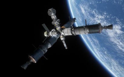 T+07:10 – Arrimage via port supérieur du module de jonction. Les ingénieurs commencent la procédure de pressurisation.